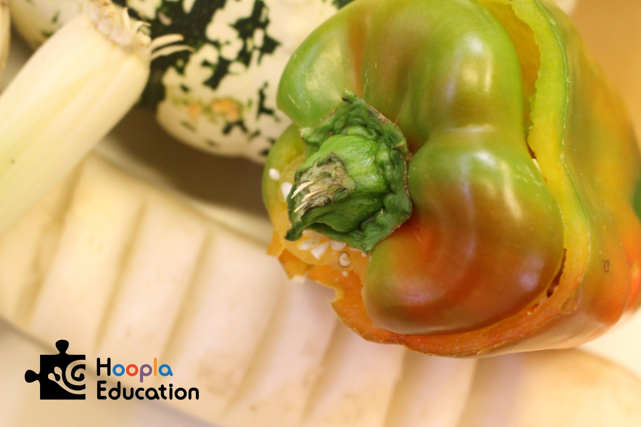 Learning Objective: Exploring how sound is produced through manipulation of vegetables and natural materials to create an instrument that can be played in various ways, producing different timbres, Creatively using vegetables (a natural material) to explore sound.